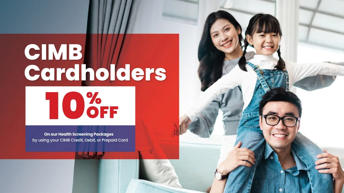 Enjoy 10% off on our health screening packages by using your CIMB Credit, Debit or Prepaid Card.