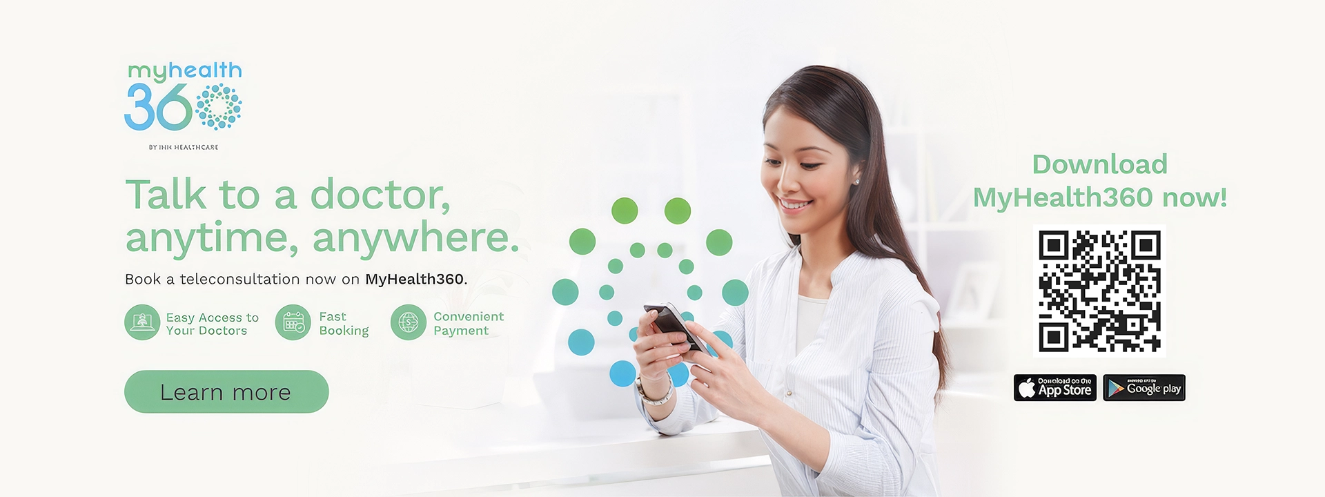 MyHealth360 is accessible to everyone. For patients, it offers the convenience in managing their family's and their health in a single place, anytime, anywhere such as appointment booking, appointment reminders, instant access to medical records, health tracker, pre-registration, view itemized bills, online payment and many more.